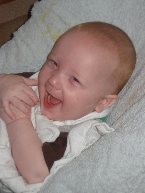 The latest is that I am now 5 months, sitting and starting to eat solids. I haven't been weighed or measured for many weeks but I do know that I am getting very big and nice and chubby.