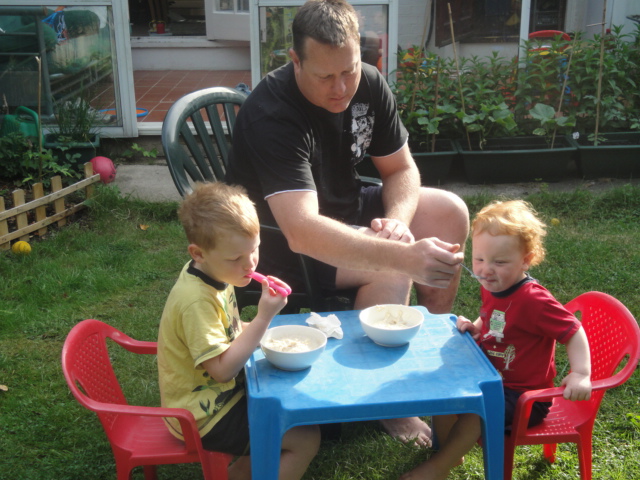 Breakfast in the sun before the big boys head off to Cardiff |