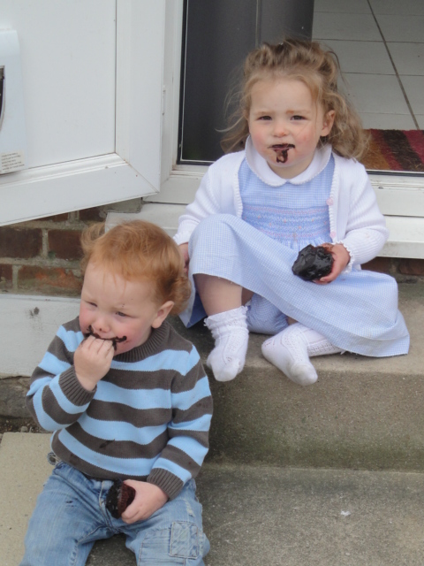 Me and Georgie sitting together to eat our cake |