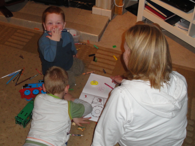 Everyone colouring in on the carpet |