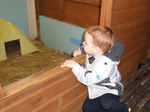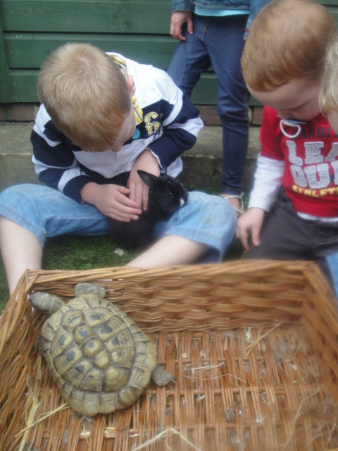 James playing gentl with the rabbit whilst we look at the tortoise too |