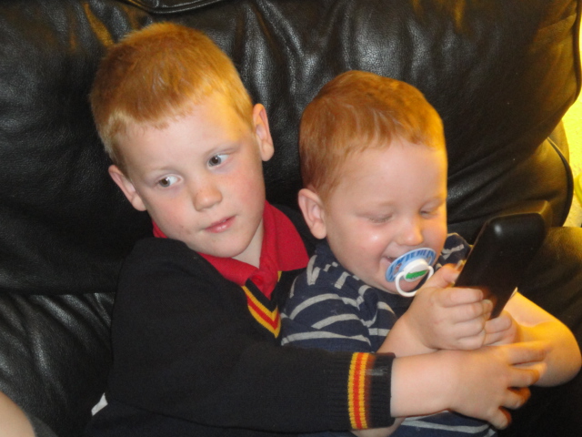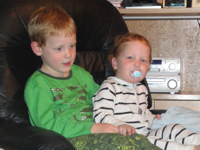 Cuddles before James goes to school |