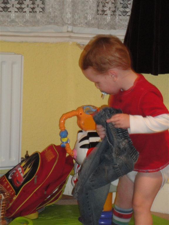 Hilarious... trying to put on my own trousers! |