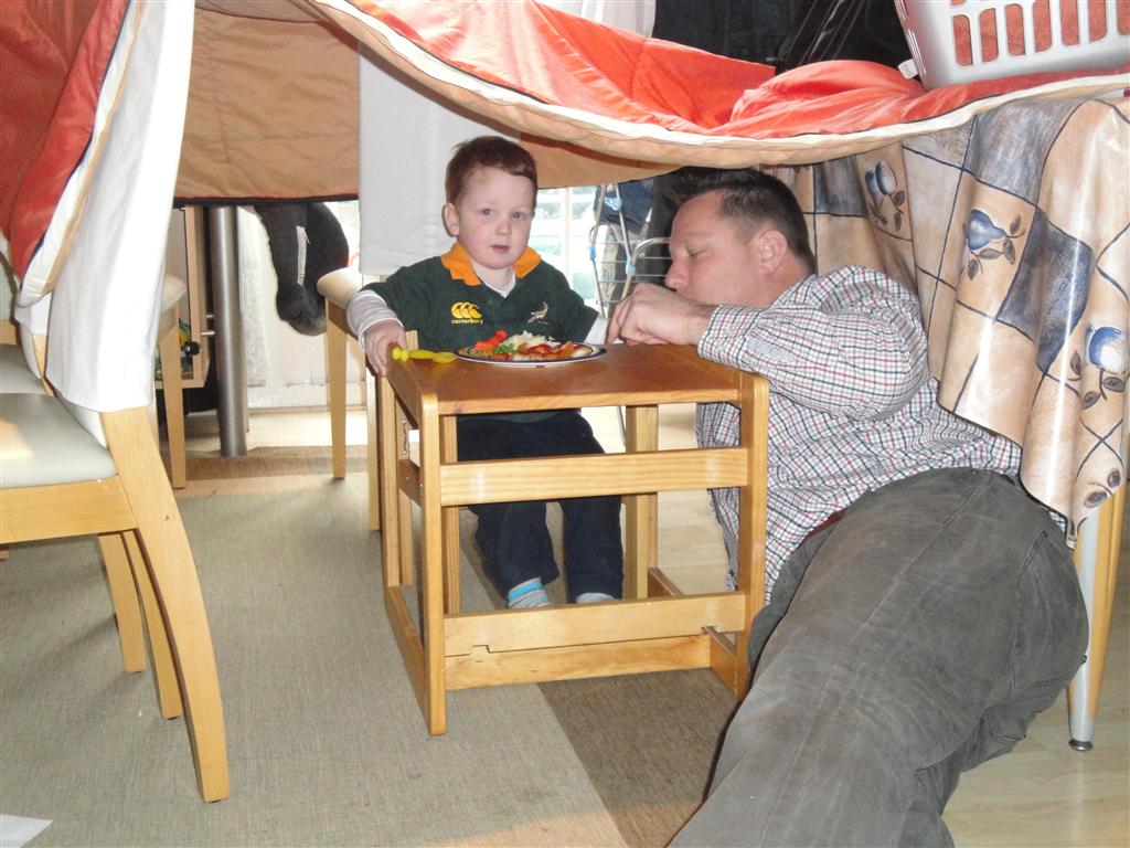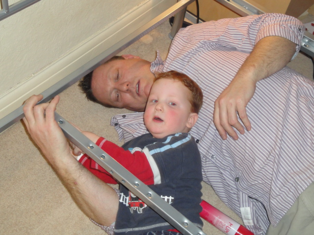 Helping Daddy make the new bed |