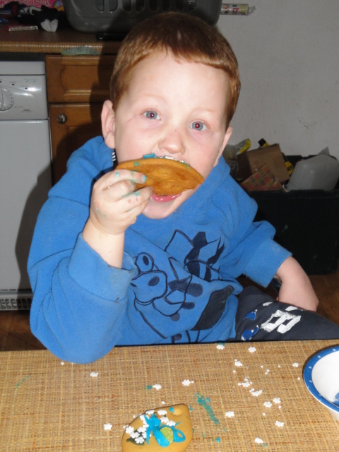 Eating my Christmas biscuit. The icing was particularly nice! |