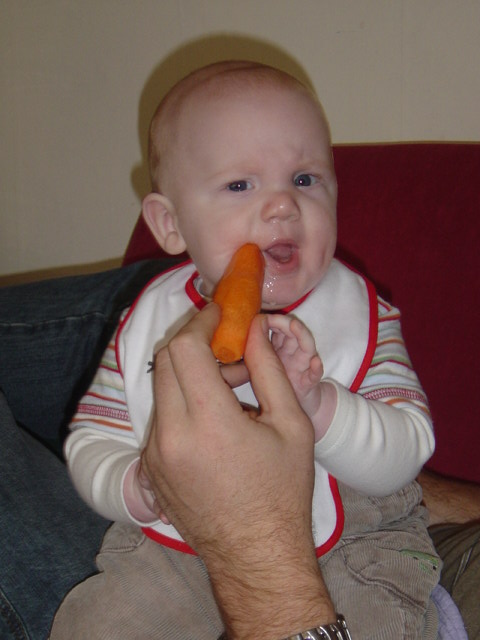 A cold carrot is a wonderful thing for those aching gums you know!! |