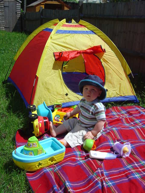 Playing out in the garden with my tent and new toys |