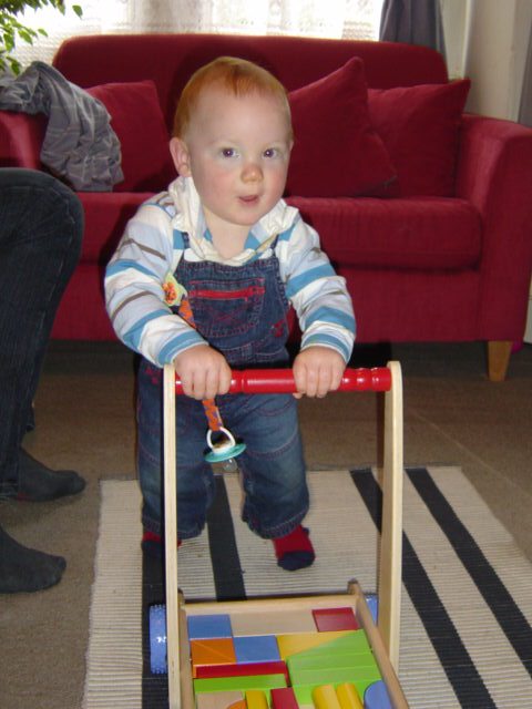 Me again - walking with my wooden trolley and blocks |