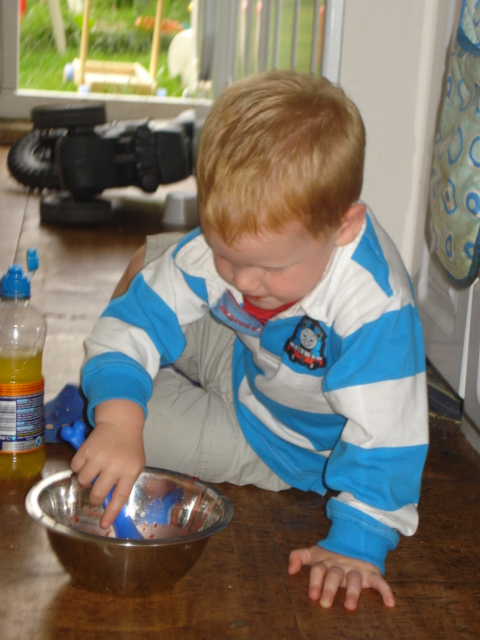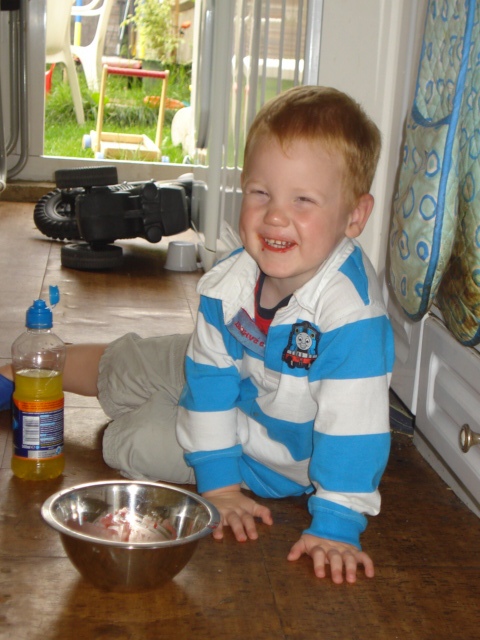 Hee hee! Licking the icing bowl after making cakes. They didn't last long!! |
