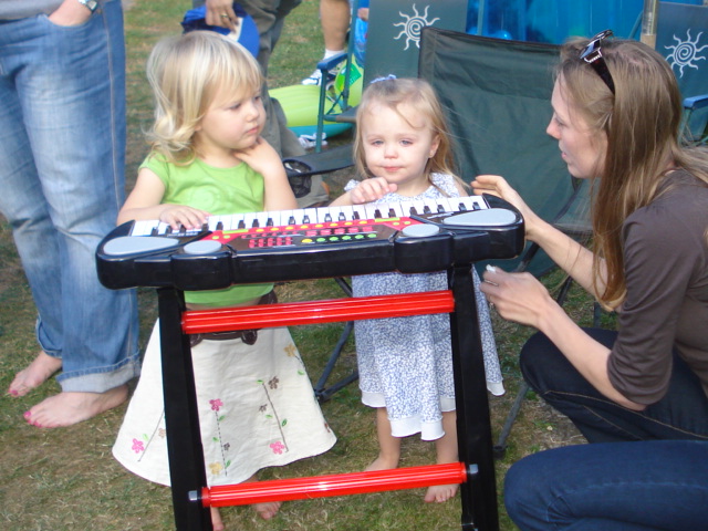 A couple of my girl friends playing my new keyboard |