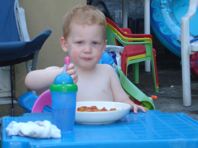 Enjoying supper outside cos its so hot inside.... really! |