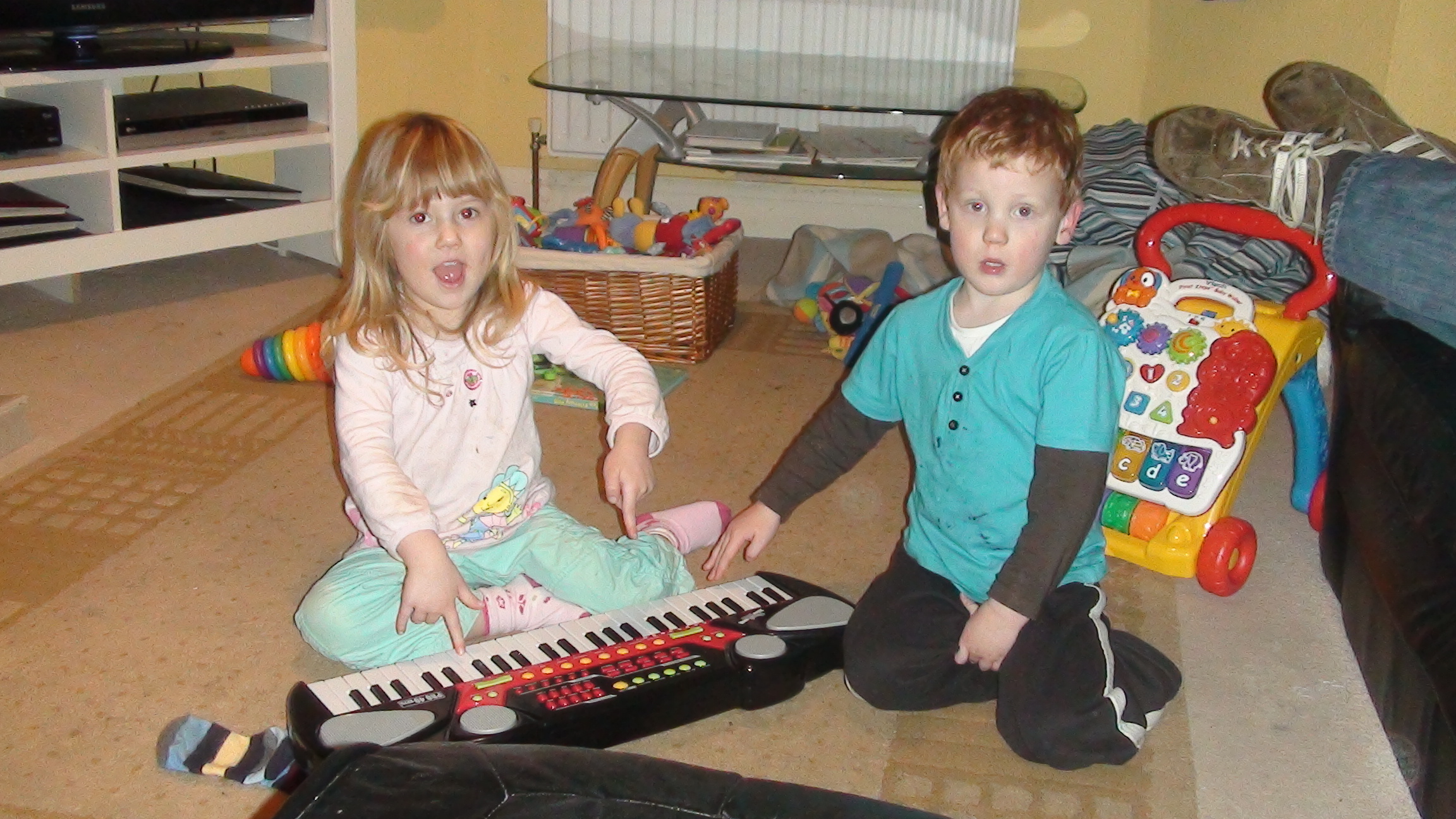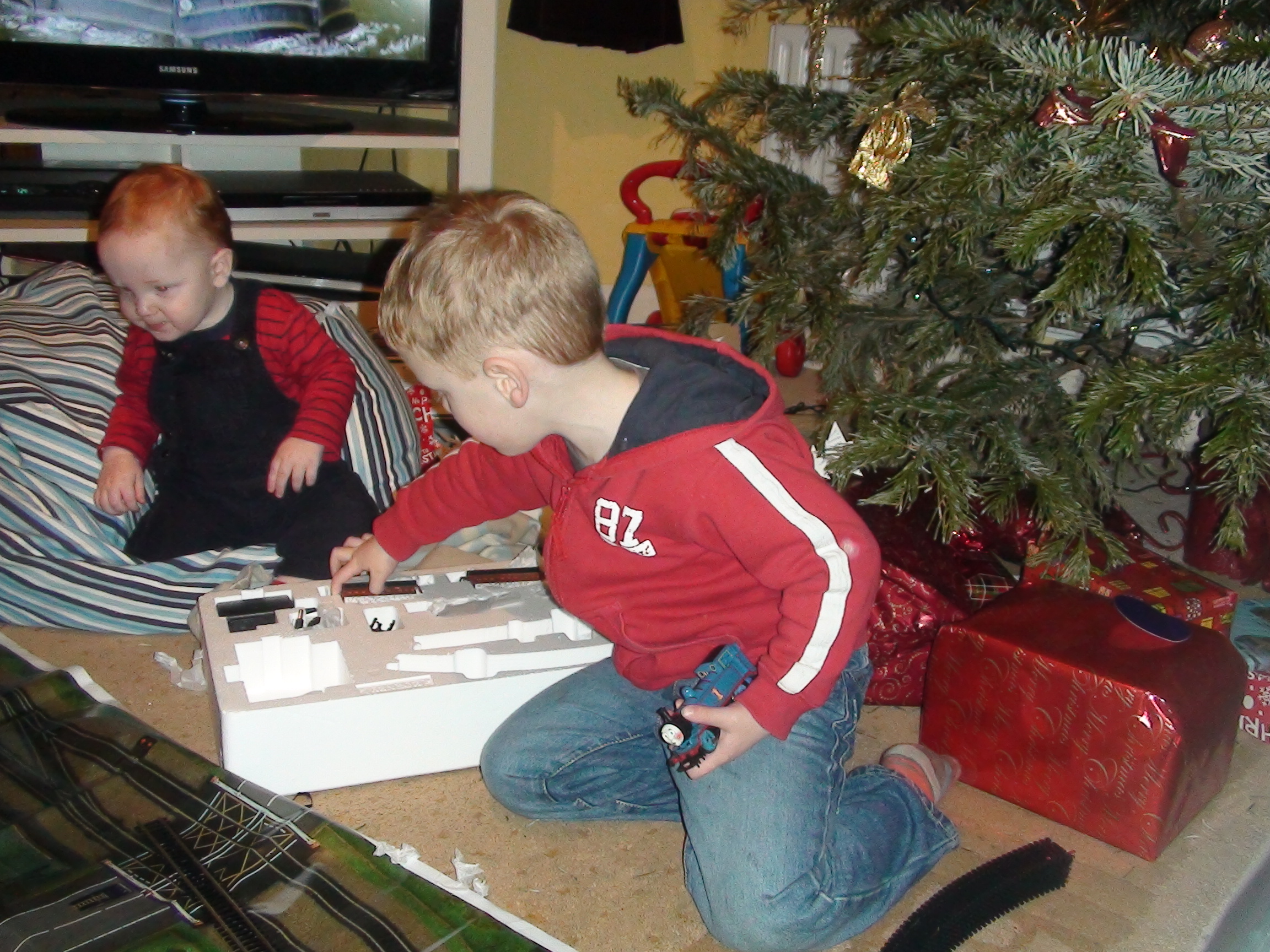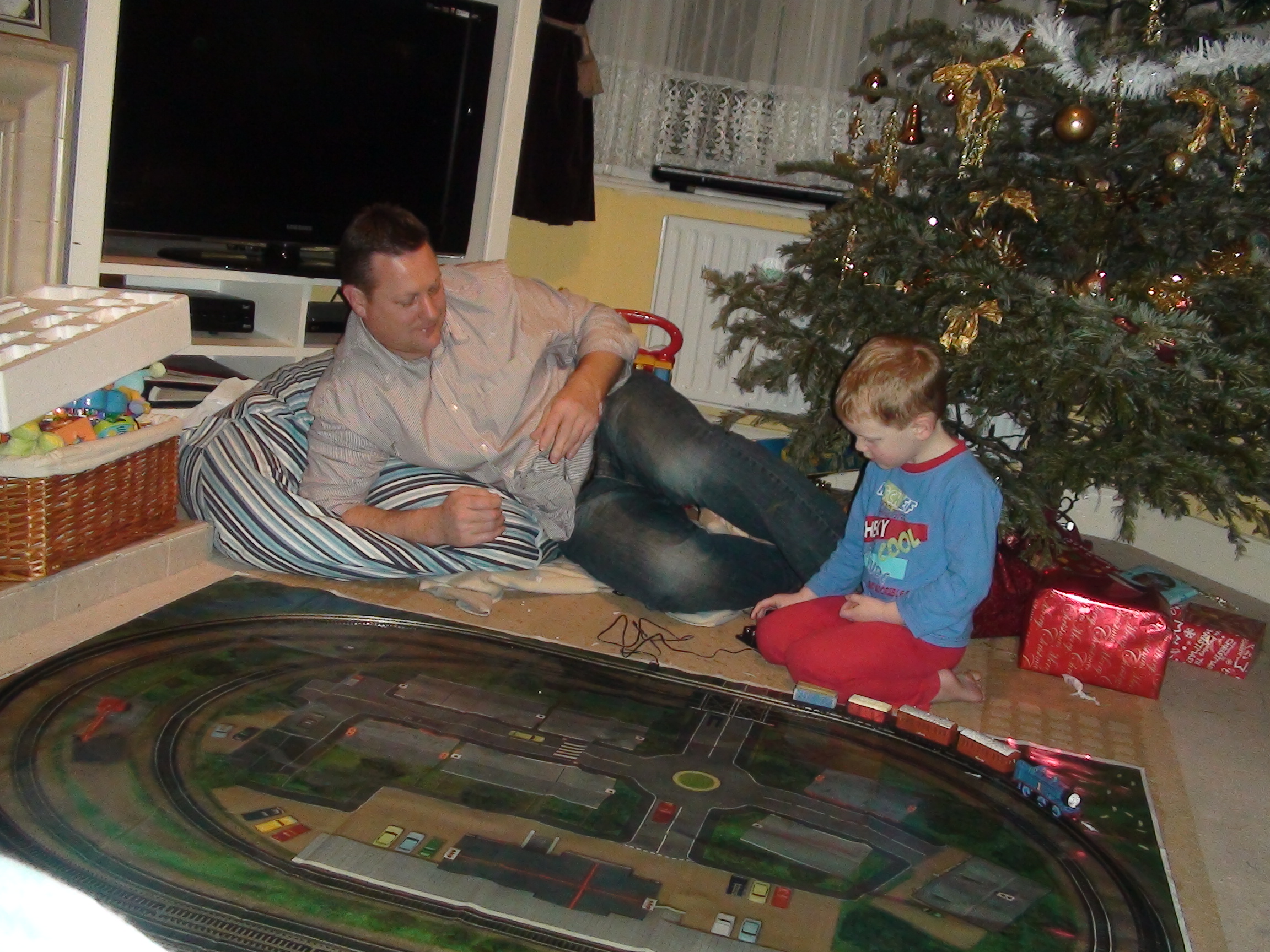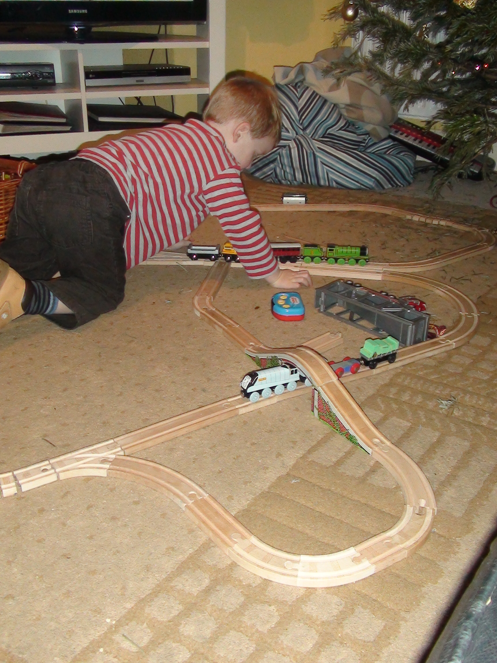 Playing with my trains - look at the magnificent tracks Daddy put together |