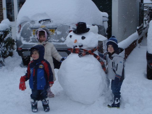 The snowman made by the neighbours and decorated by us |