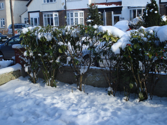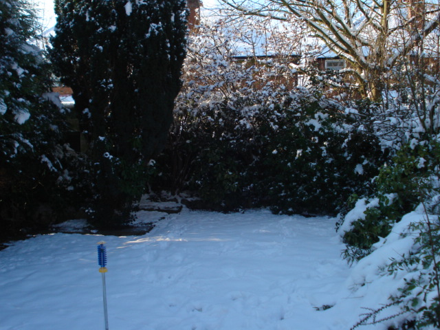 Our garden still covered in thick snow |