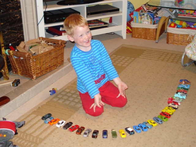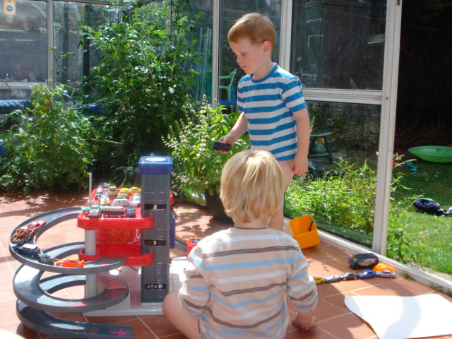 Me and Dylan engrossed with the cars and garage |