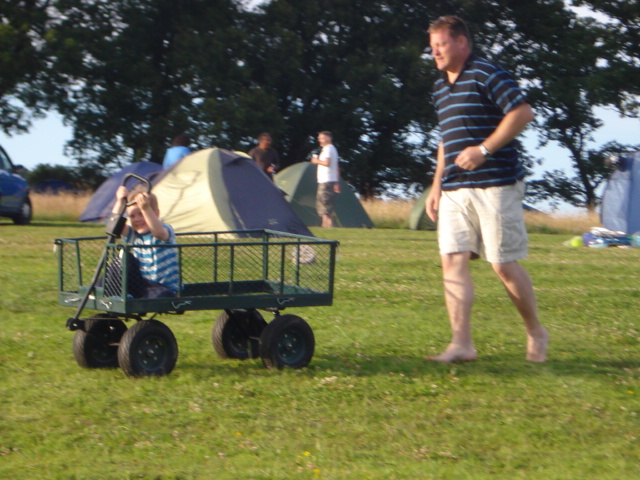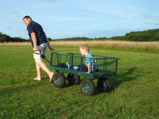 Me and Daddy horsing around with the trolley |