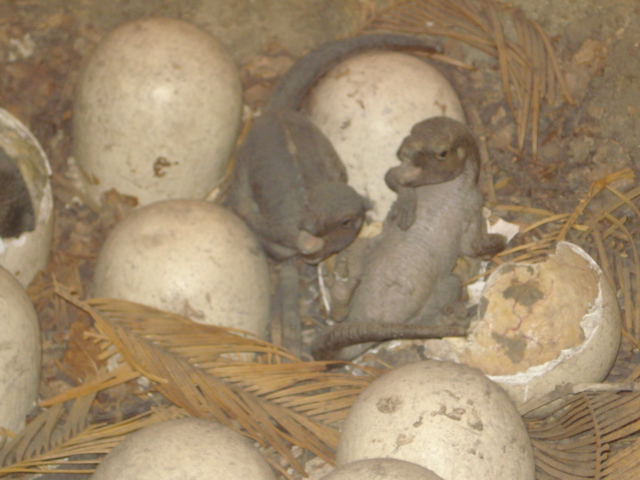 Baby dinosaurs hatching out of their eggs |