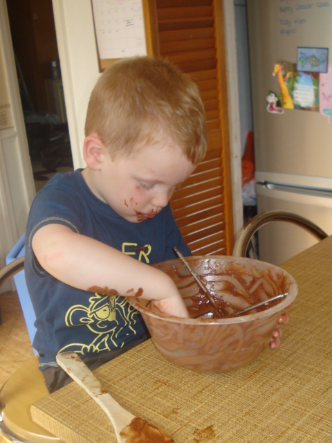 Mummy has been practising making my birthday cake, and I am just testing it out |