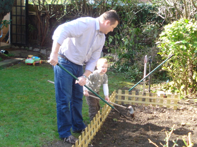 Me and Daddy preparing the seed bed for our vegetable patch |
