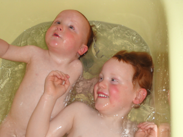 Mucking about in the bath with Jack |