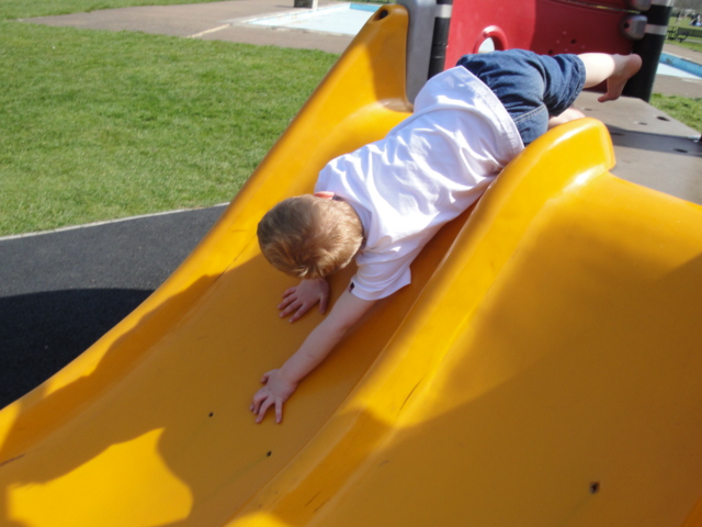 Getting ready to slide down backwards |