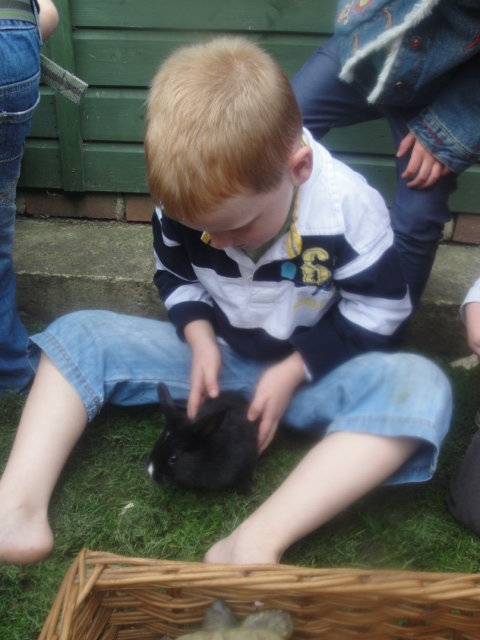 Cuddling a bunny at Samantha's pary (Horton Animal Farm) |