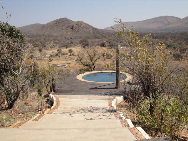 Breakfast with the lovely view behind us - Game Farm near Rooiberg |