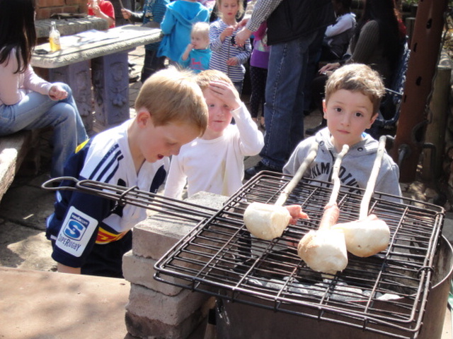 Preparing their lunch - boerewors & stokbrood |