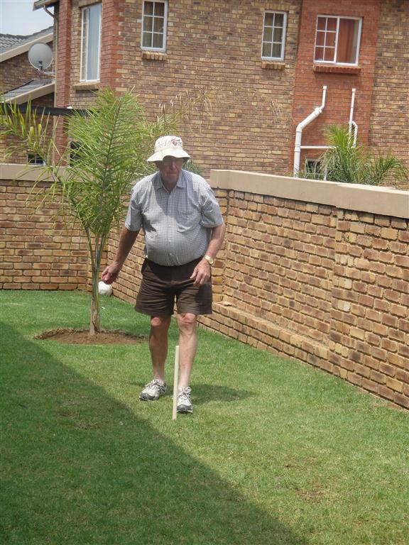Grandpa playing cricket with James |