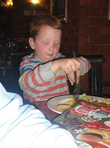 James ready for Grandpa's bowling |