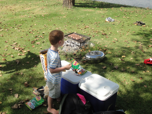 Jack eating all the chips whilst keeping an eye on the braai |