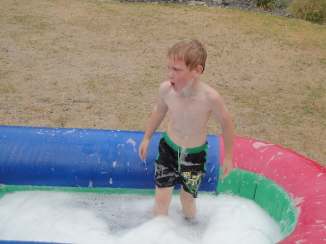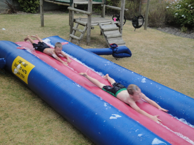 Jack's party - a huge blow-up slippy slide in Ouma's garden |