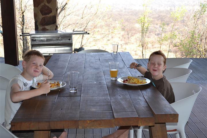 James and Jack enjoying their breakfast on the deck |