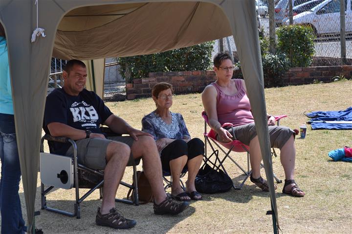 Nico, Ouma & Corrie spectating from the comfort of the gazebo! |