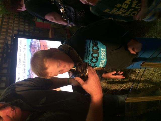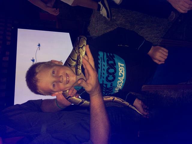James with a snake around his neck at the Randfontein show |