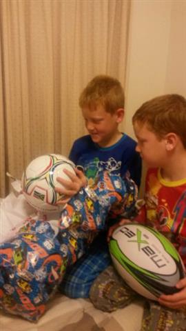 Wow, just what he wanted - new football and rugby ball |