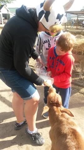 At the animal farm - feeding the calves |