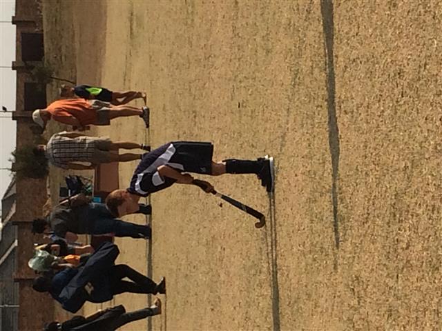 In the thick of things. He was actually the best player on the field and terrified most of the kids with his strokes! |