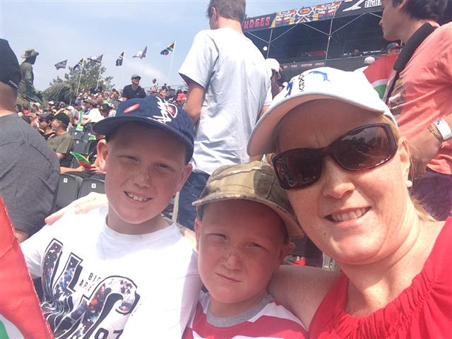 My boys waiting to board the bus to the RedBull X Fighters Venue |