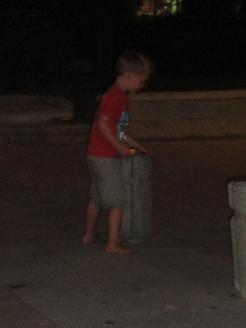 Playing outside the restaurant |