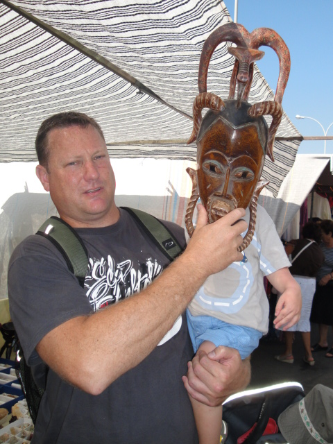 Visitng the market, where Daddy and Jack were playing silly games with the African masks |
