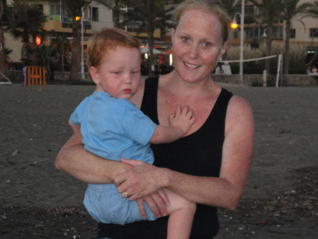 Jack holding onto Mummy for dear life.. terrified of the sea water |