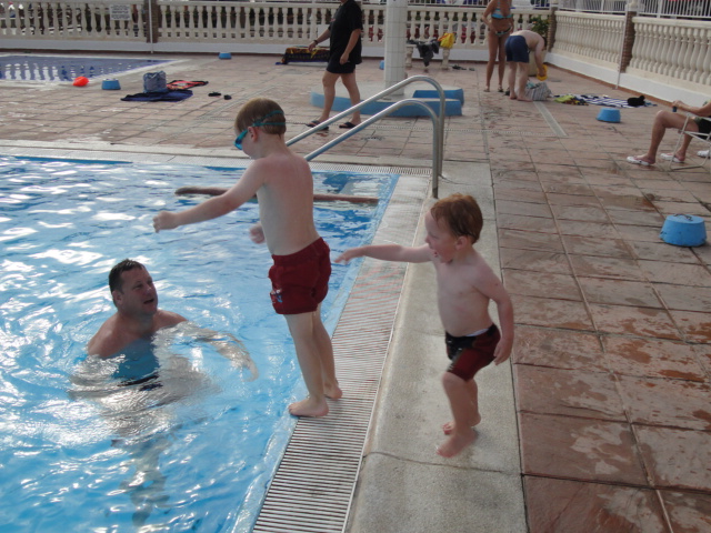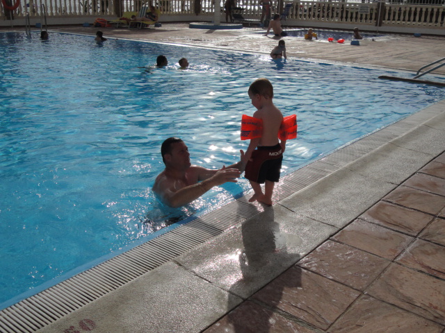 James having his first swim... with arm-bands |