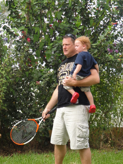James warming up for the tennis game |