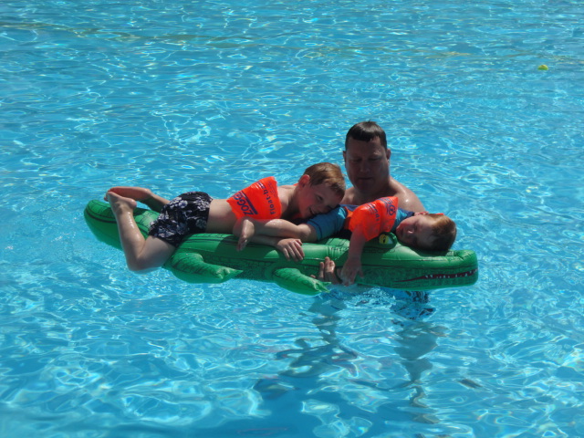 The boys loving the croc lilo, which was banned after the first day |