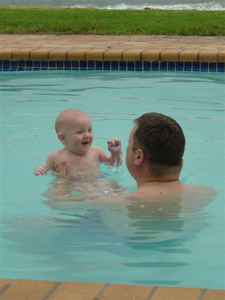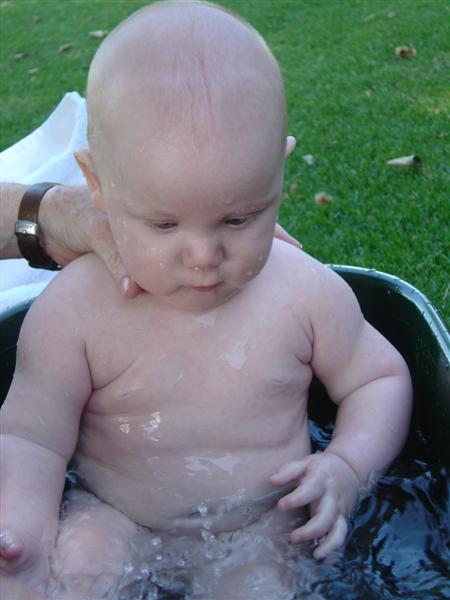 Mossel, Piet, Pierre and Eddie cooling down in the kiddies pool |