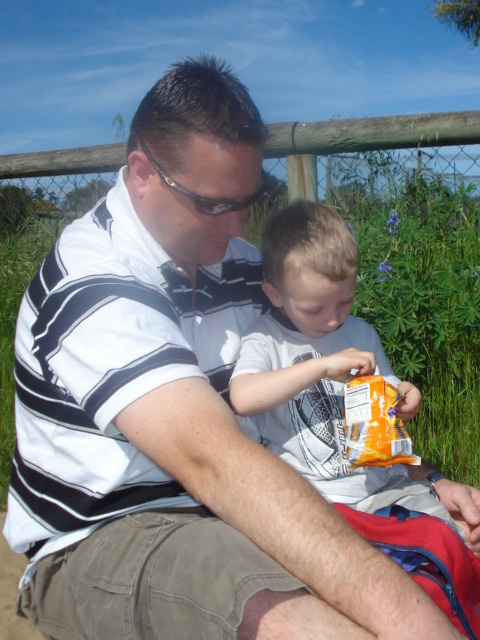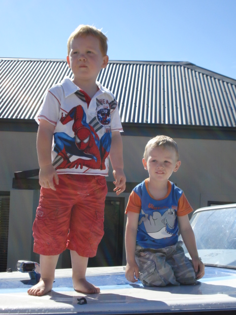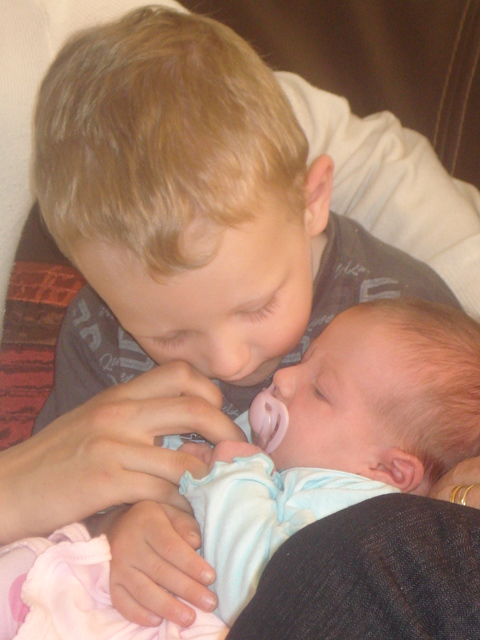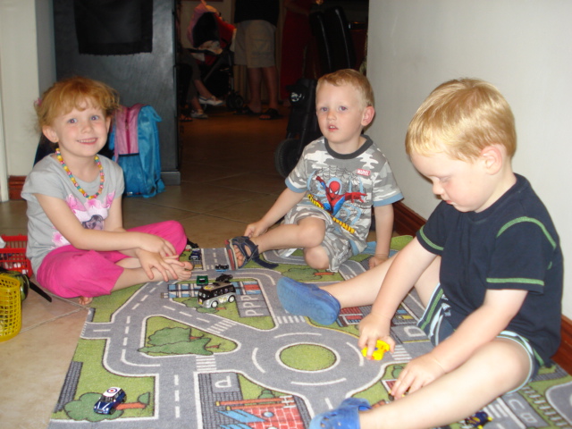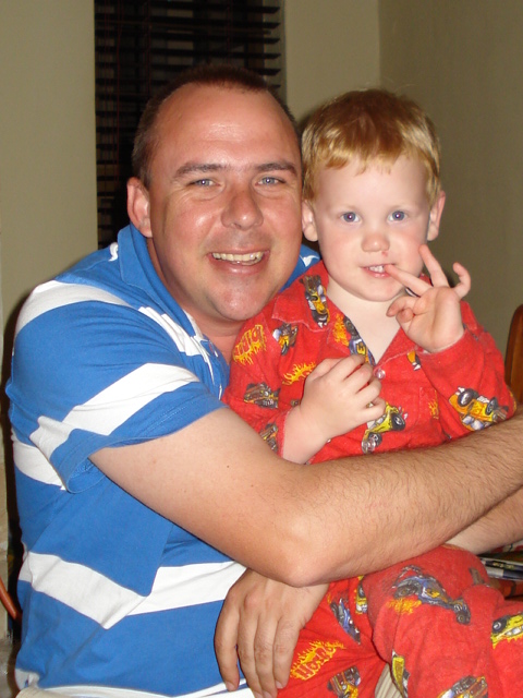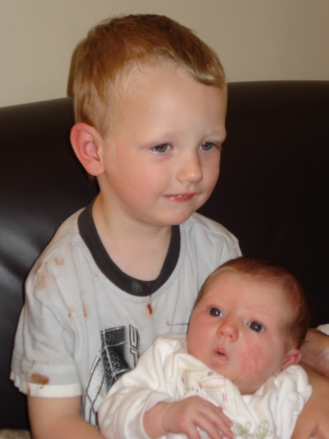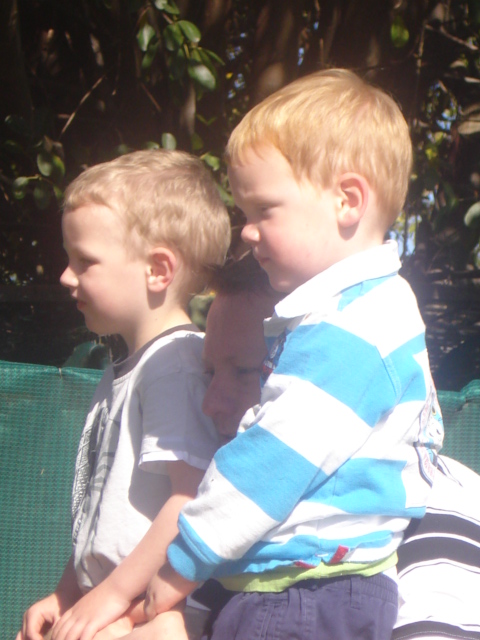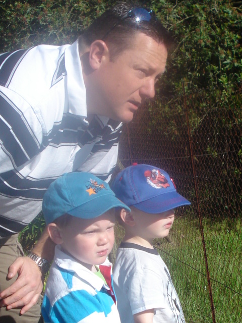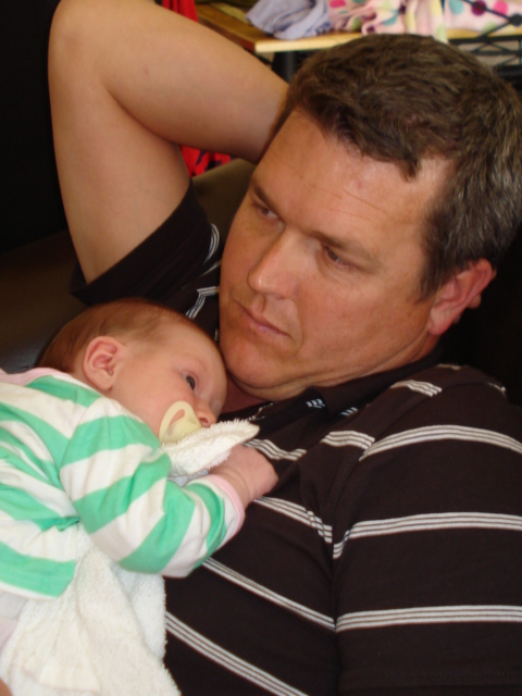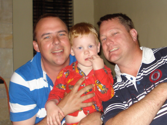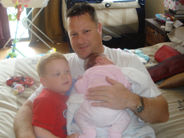 Eddie and James with baby Leah. James not so sure about Daddy holding another baby!! |