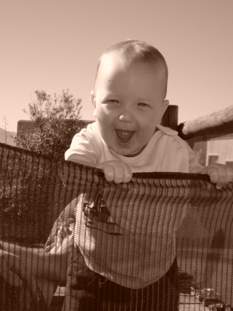 I'm so clever cos I can stand on my own holding onto this netting!! |